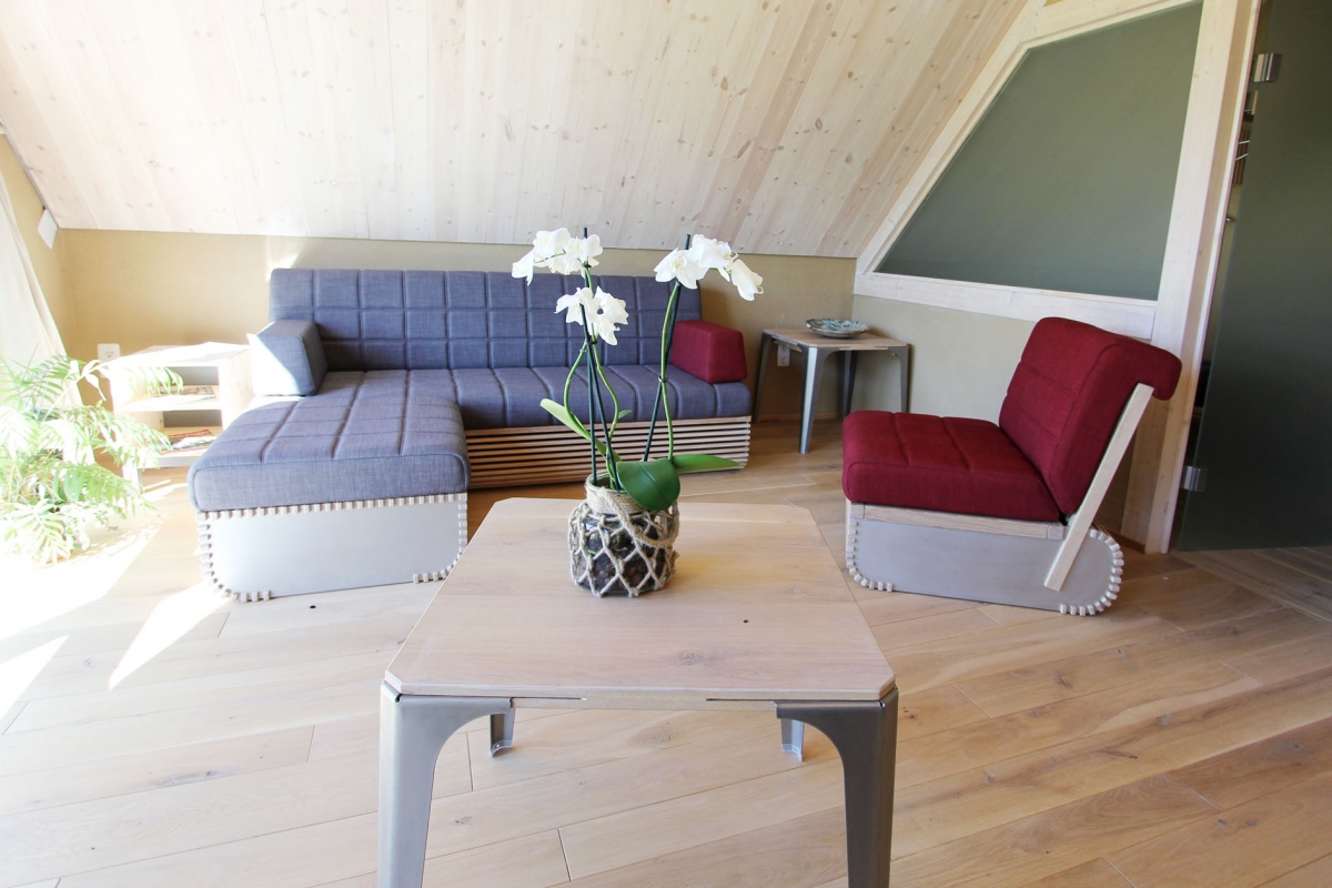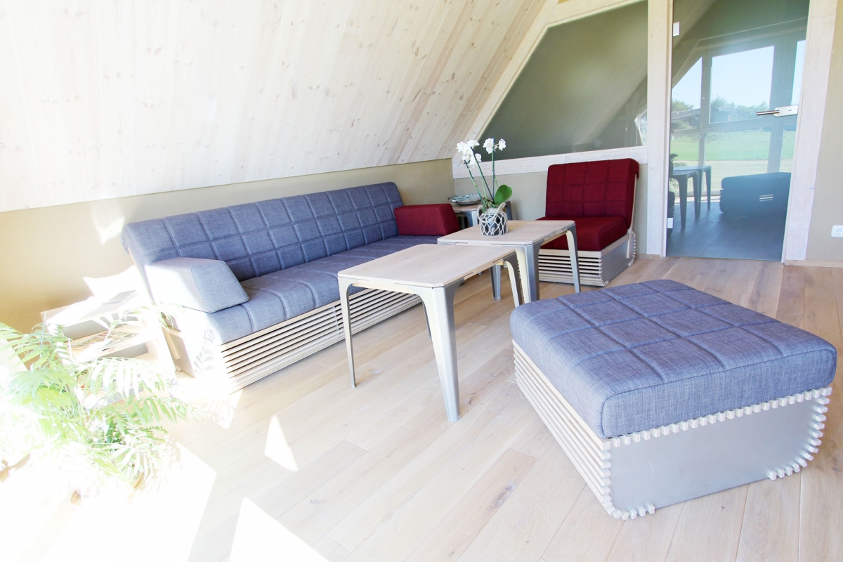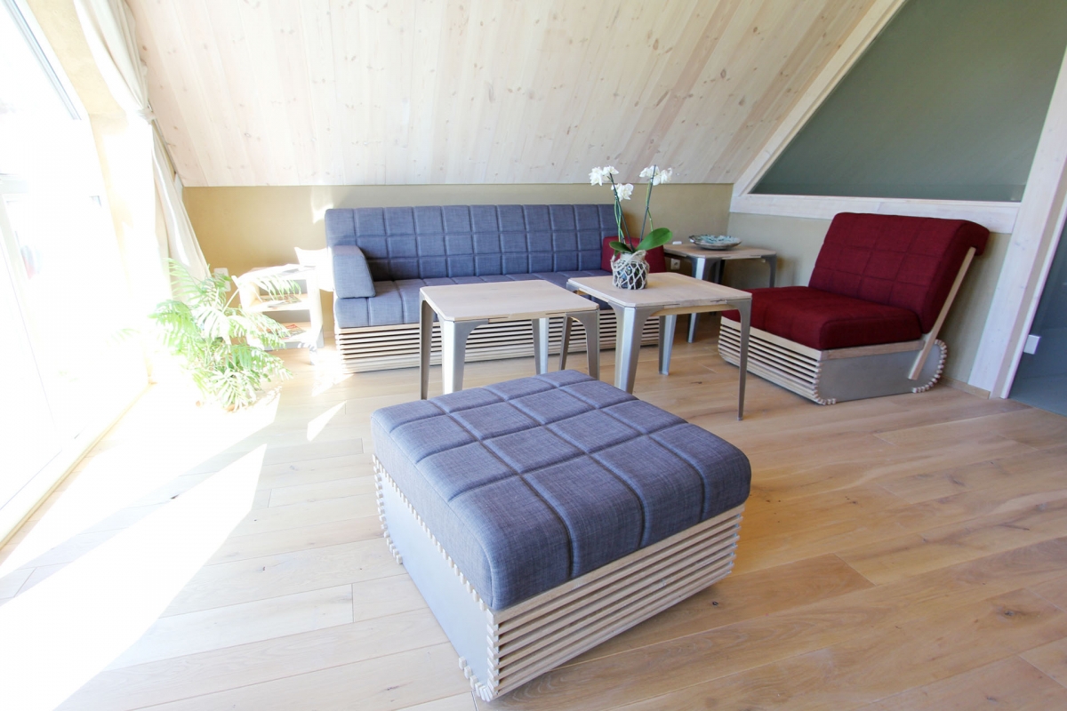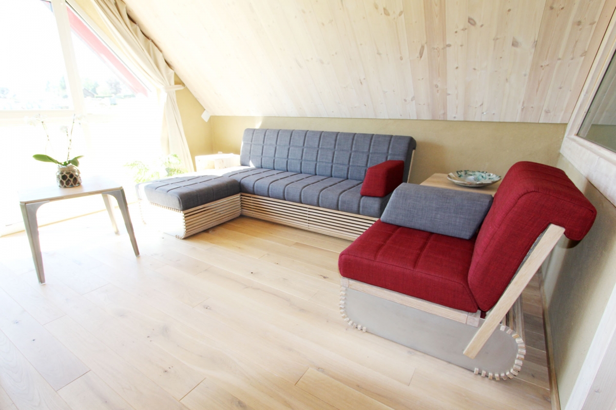 Angeboten wird ein Sofa als 2-Sitzer sowie auch als 3-Sitzer. Die Sofa-Sitzmodule werden personalisiert gefertigt, d.h. Sitzhöhe, Sitztiefe, Breite und Farbe werden nach Kundenwunsch angepasst. So entstehen individuelle Sitzgruppen, die sich harmonisch in die jeweilige Wohnsituation des Kunden einfügen.